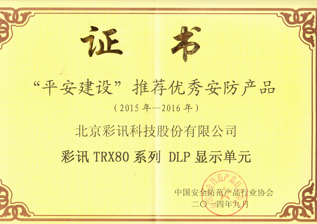 平安建設(shè)推薦優(yōu)秀安防產(chǎn)品證書(shū)