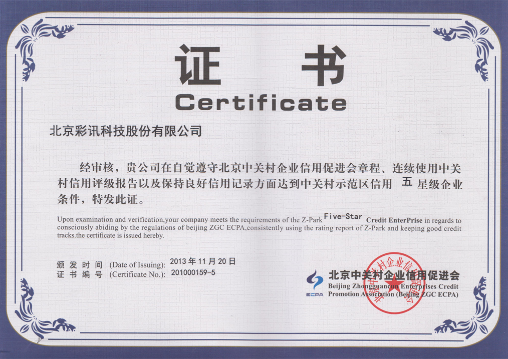 中關(guān)村示范區(qū)信用五星級(jí)企業(yè)