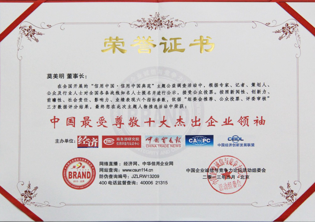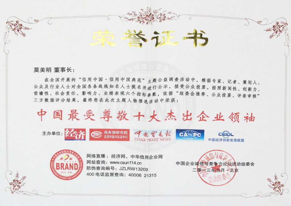 中國(guó)最?lèi)?ài)尊敬十大杰出企業(yè)領(lǐng)袖...